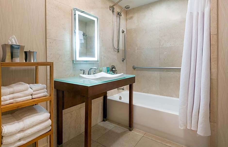 This king room has a tea/coffee maker, air conditioning and seating area.