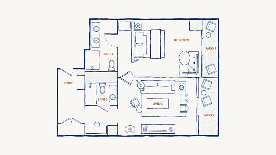 The double room features air conditioning and a safe deposit box. The unit has 2 beds.